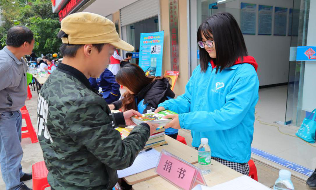 活动中,居民将家中的闲置的拼音读物、文学名著、童话故事、科普读物等书籍带到现场捐赠,为乡村的贫困家庭送上温暖,实现孩子的阅读梦。