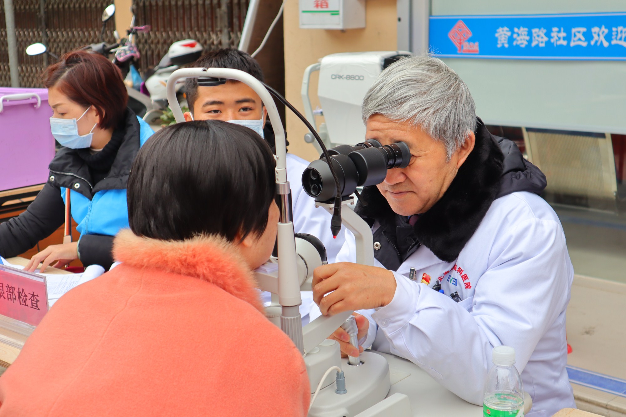 中医推拿艾灸的桌前已经排起了长龙,北海中医院的专业中医为居民们提供推拿、艾灸等服务以缓解他们的病痛,还向居民展示各种按摩手法,耐心地解答居民健康方面的问题,现场不时传来居民的感谢声。除此之外还有爱尔眼科的医务志愿者们为居民检查眼部健康,讲解保护眼睛的方法。