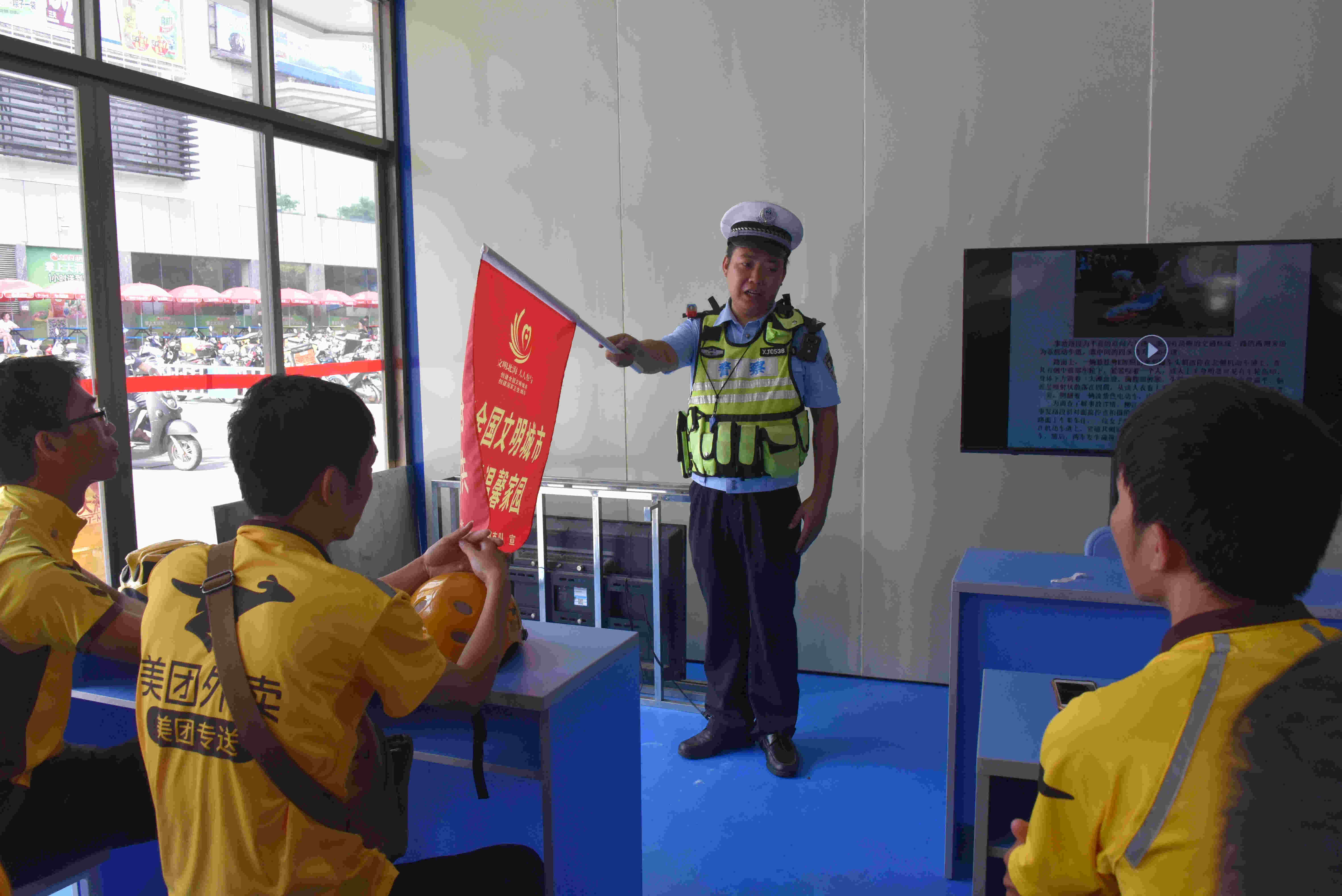 为深入推进北海市创建全国文明城市、国家卫生城市的“双创行动”,进一步营造有序、文明的交通秩序,6月11日上午,北海市公安局交通警察支队联合“美团外卖”开展交通安全体验培训课程。
