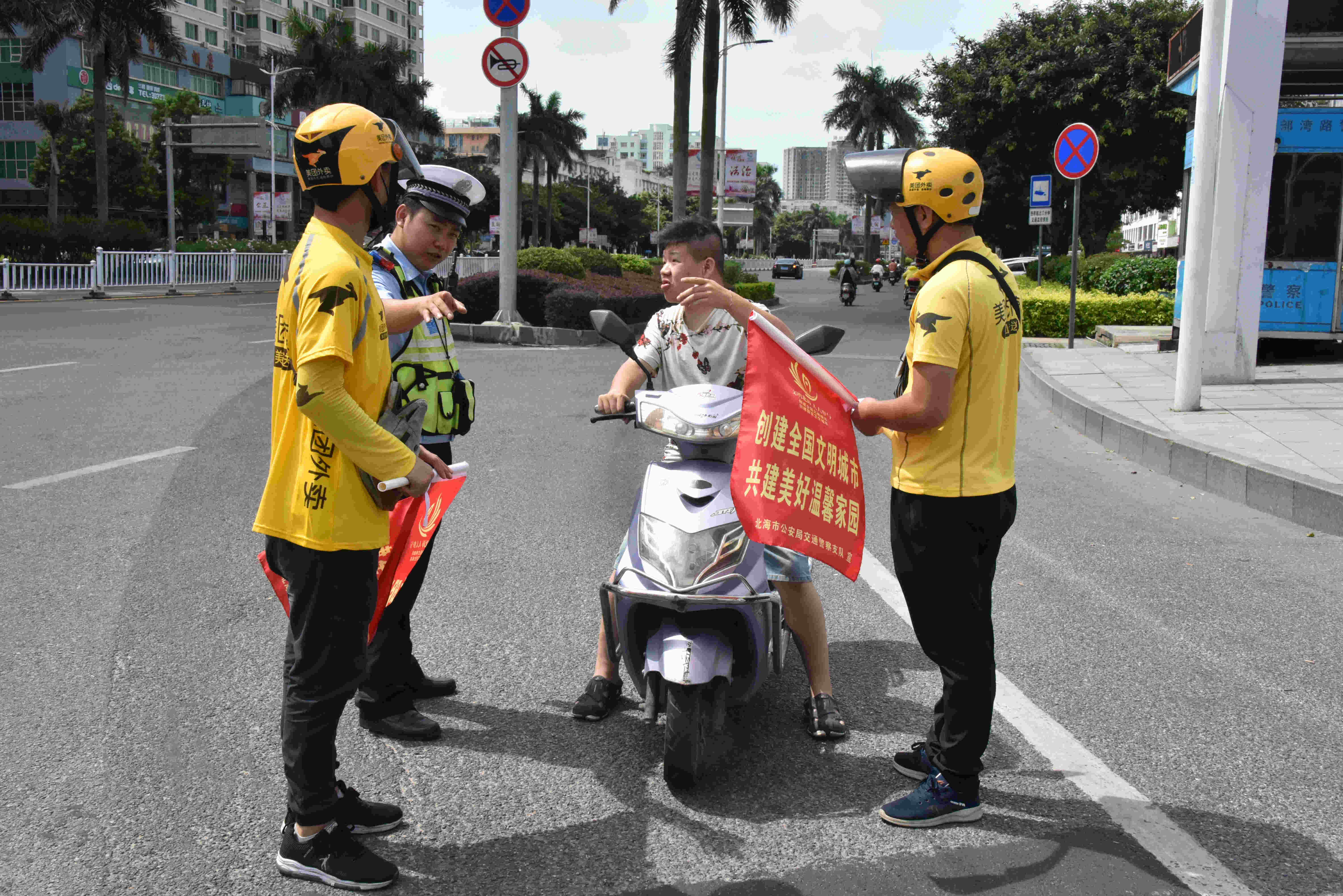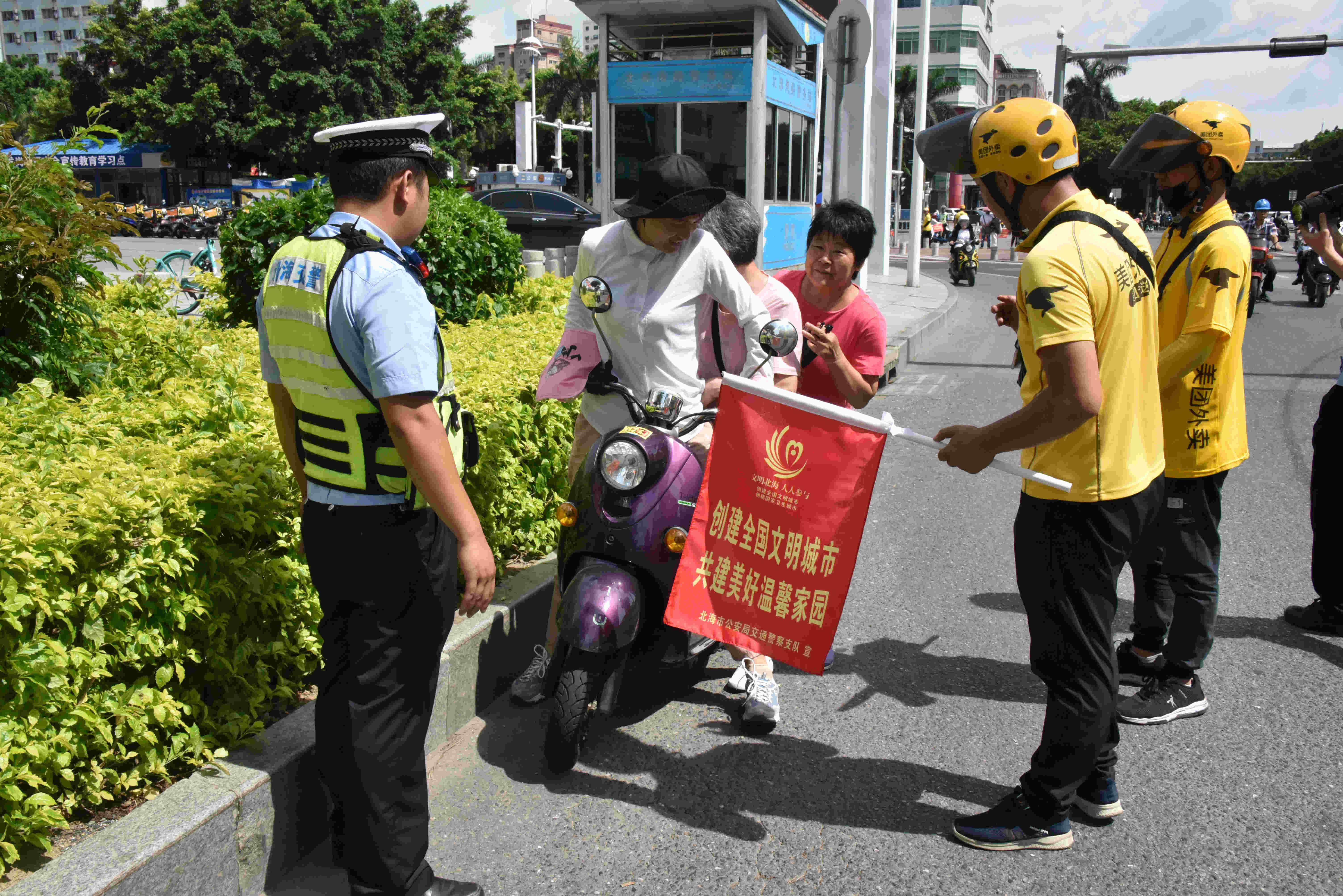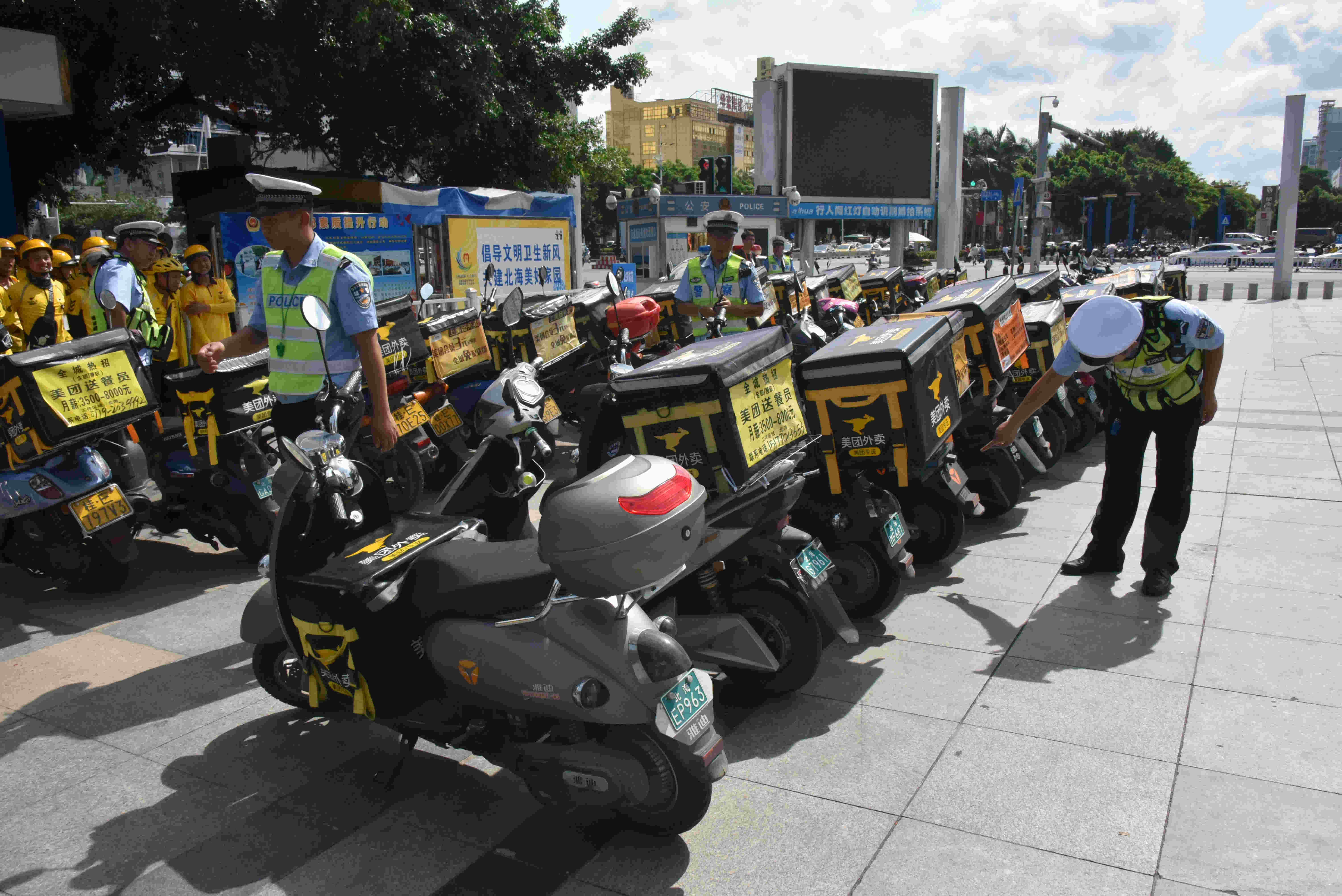 北海交警表示,送餐员的队伍非常庞大,仅美团在北海市的送餐员就高达1100多人。每天除去正常的轮休,也有近900人在路上为北海用户服务。外卖配送均是使用电动车或摩托车,在配送的过程中须要用到手机来分配订单及获取订单信息,不少送餐员在送餐的途中一边开车一边持手机操作等,且部分送餐车辆或多或少存在着一些安全问题,存在较大的交通安全隐患。针对此情况,北海交警将结合“飓风行动”,定期持续开展道路交通安全教育活动,进一步加强配送员队伍的交通安全培训,提升大家的文明交通意识和安全出行意识。