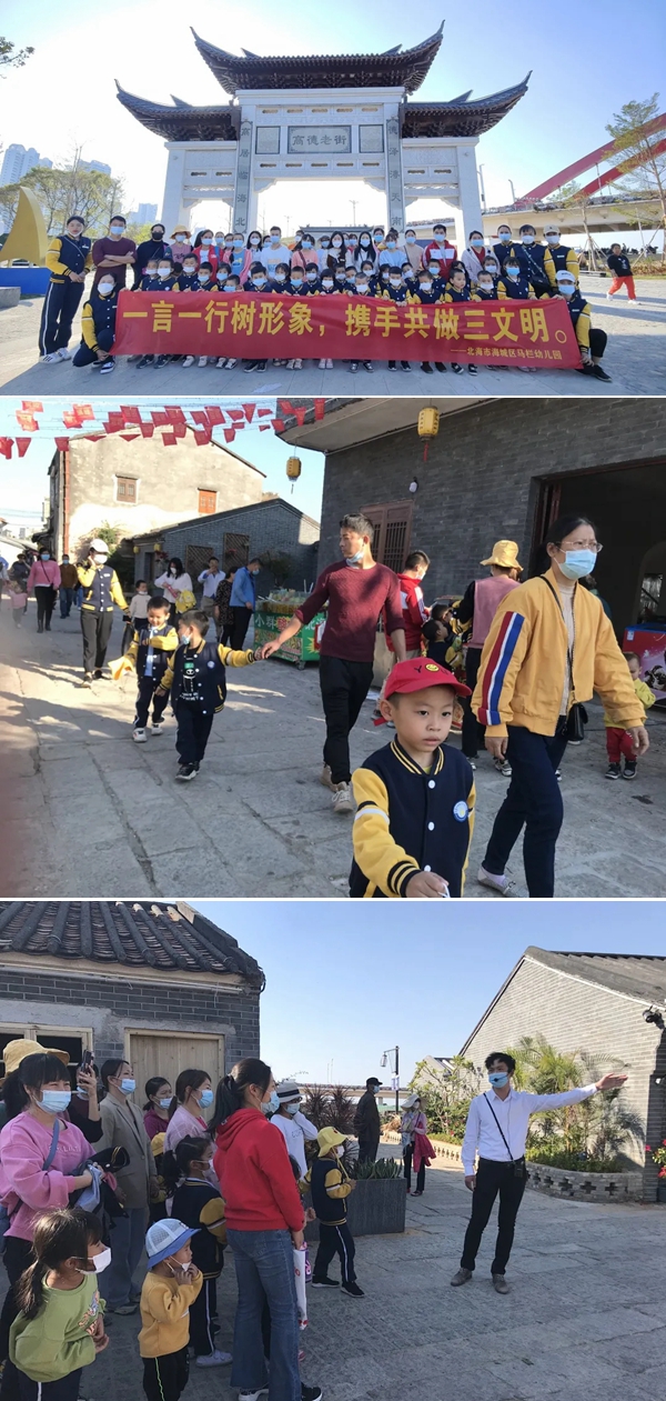 11月26日下午,北海市海城区马栏幼儿园组织中大班小朋友、家长代表到高德古镇及附近海滩开展了以“三文明”为题的社会实践暨“小手拉大手,共创文明城”志愿者活动。