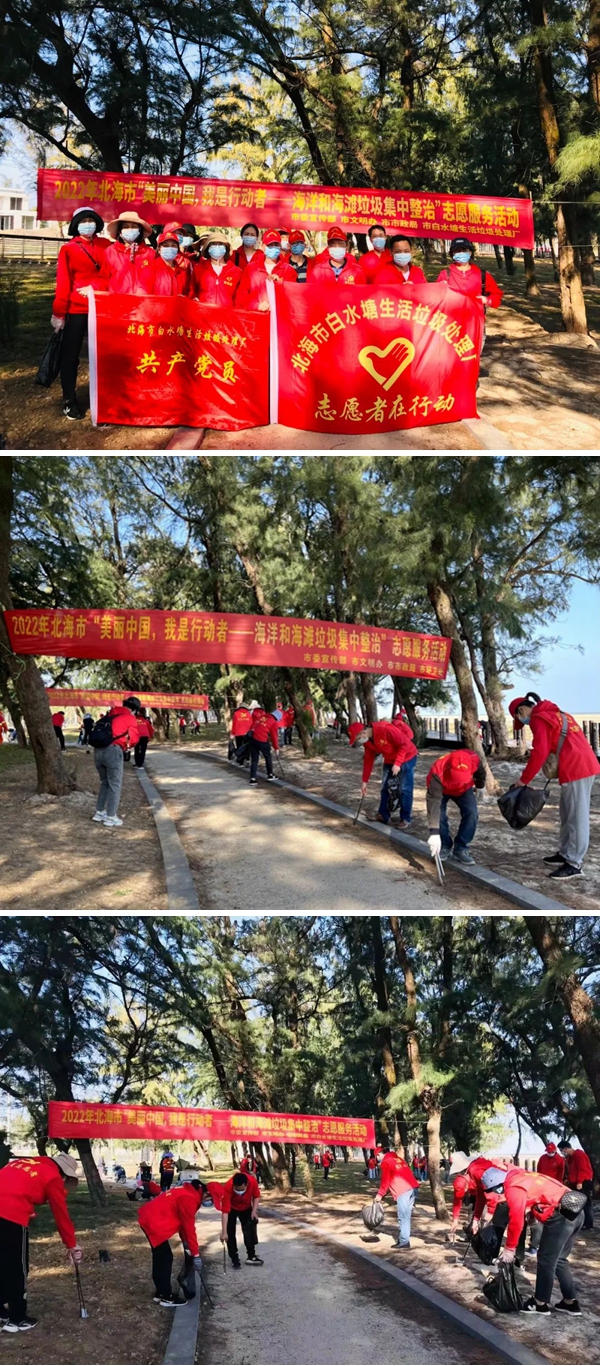 为贯彻落实中央、自治区关于生态文明建设和实施海洋强国战略的决策部署,积极响应北海市海洋和海滩垃圾集中整治行动的号召,3月9日,市环卫处联合市委宣传部、市文明办、市市政管理局、市白水塘生活垃圾处理厂、北海侨盈城市环境服务有限公司,组织60余名志愿者在银滩东区开展“美丽中国,我是行动者——海洋和海滩垃圾集中整治”志愿服务活动。
