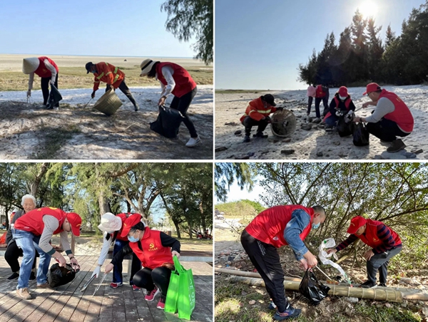活动中,党员干部们身穿志愿者服装,手拿清洁工具和垃圾袋,沿着海岸线旁的沙滩展开地毯式的搜索,拾取了烟头、塑料制品、漂流废弃物等垃圾。志愿者们重点关注容易隐蔽和积累垃圾的树丛和沙堆等区域,用自己手中的工具,认真细致地将被忽略的垃圾清理出来,以实际行动守护蔚蓝、清洁、美丽的海岸线?;疃诩?,共出动五辆保洁车、一辆垃圾收运车,清运海滩垃圾约0.5吨,清理了海滩2千米。