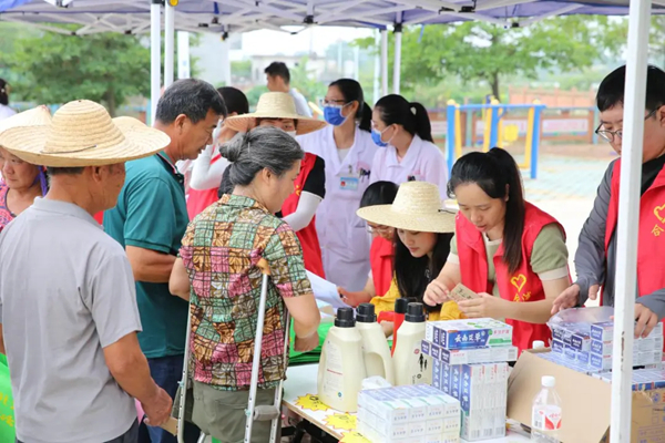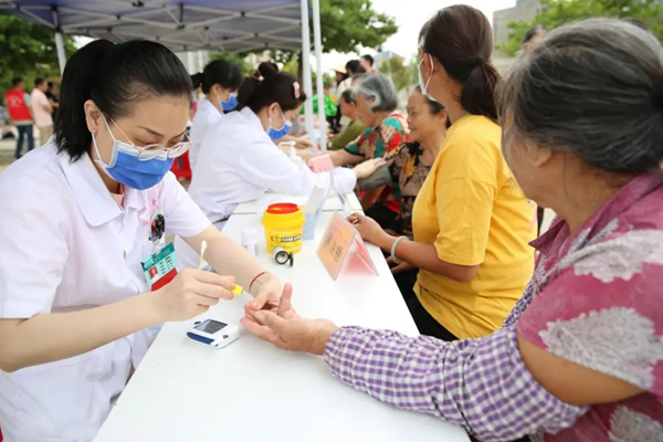 医护志愿者正专注地为村民测量血糖,展现志愿服务实践角的暖心一幕。此次活动为村民带来健康义诊服务,传递贴心关怀,助力乡村健康生活。 郭泽玲 摄