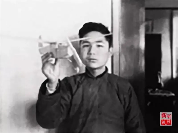 青少年时期的顾诵芬手持自己做的航模。(资料图片)
