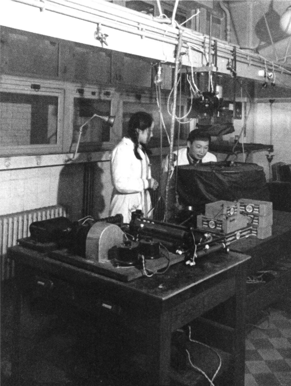 1946年,钱三强与何泽慧在巴黎居里实验室的云雾室设备上做“三分裂”实验