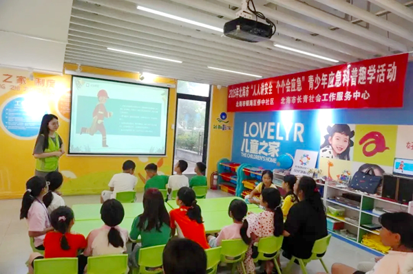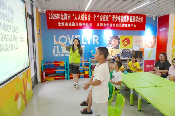 7月8日,北海市银海区侨中社区联合北海市长青社会工作服务中心在侨中社区未成年人活动中心开展了2025年北海市“人人讲安全 个个会应急”青少年应急科普趣学活动,共计30余名青少年参与活动。