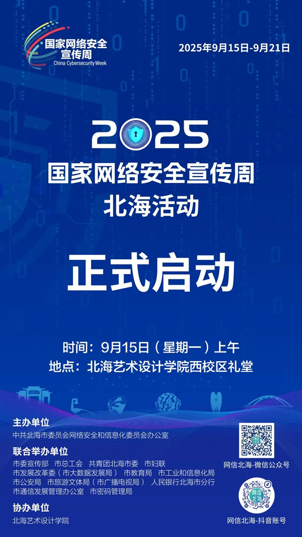 简介:市委网信办联合市委宣传部、市总工会、共青团北海市委、市妇联、市发展改革委(市大数据发展局)、市教育局、市工业和信息化局、市公安局、市旅游文体局(市广播电视局)、人民银行北海市分行、市通信发展管理办公室、市密码管理局举行2025年国家网络安全宣传周北?;疃舳鞘?。