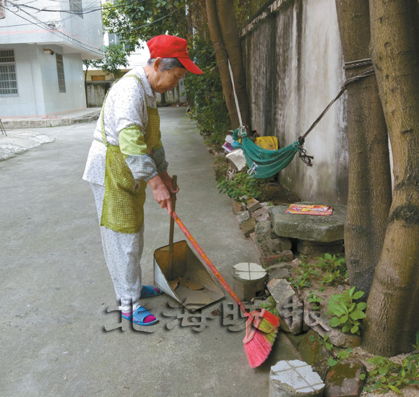 庞启祯曾是海城区八小的教师,虽已退休多年,但大家仍亲切地称其“庞老师”。如今已是古稀之年的庞老师,本应安享清福,但她却总是闲不下来。每天清晨6点多钟,只要来到宏图花园,你总能看到她那瘦小的身影在道路间慢慢地清扫着地上的落叶和垃圾。这个习惯,她已经坚持了12年。